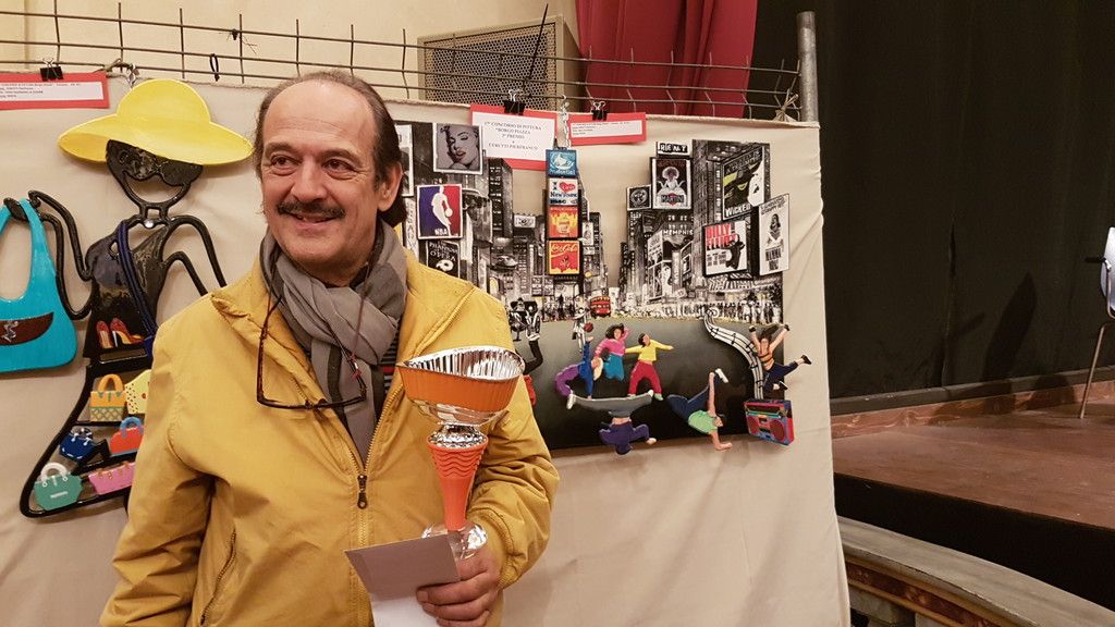 Terzo gradino del podio per il buschese Pierfranco Cerutti con la sua opera a tecnica mista “balli di strada” per la “buona realizzazione dello skyline metropolitano e per l’originalità dell’insieme dove si apprezza l’evoluzione artistica”.