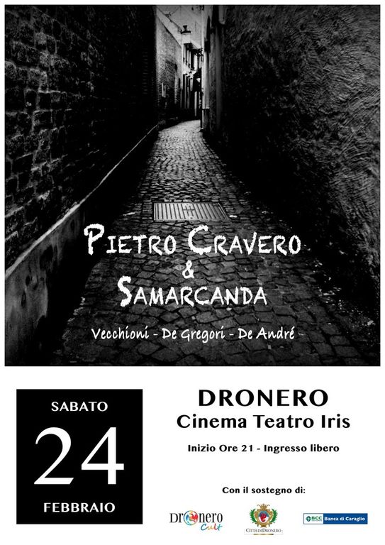 Nella suggestiva cornice del Cinema Teatro Iris, l'associazione Dronero Cult, con il patrocinio del Comune di Dronero e il sostegno della Banca di Caraglio, presenta un inedito appuntamento musicale i capolavori dei più amati cantautori italiani.