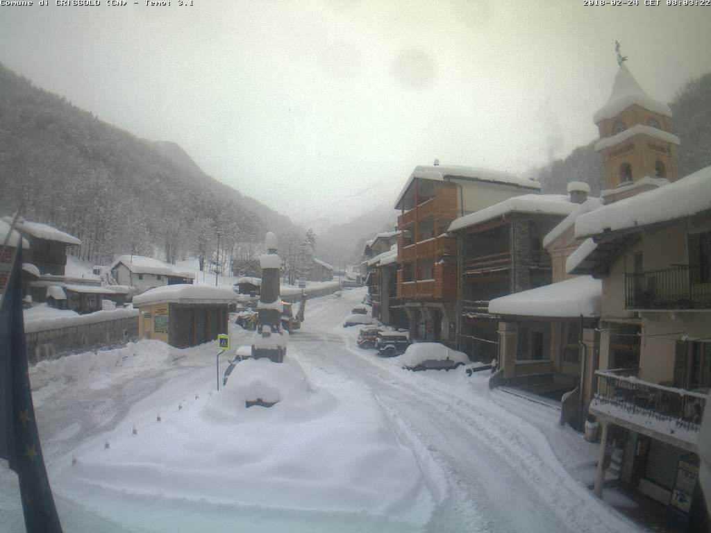 Sul capoluogo al momento si contano dai 20 ai 30 cm di neve fresca. Più cospicua la quantità di neve scesa sulle valli cuneesi, sulle valli del Monviso e del monregalese, dai 50 a circa un metro. Al momento piove sulla pianura saluzzese, sul saviglianese, sul fossanese e braidese. Neve mista a pioggia in Langa e Alta Langa.