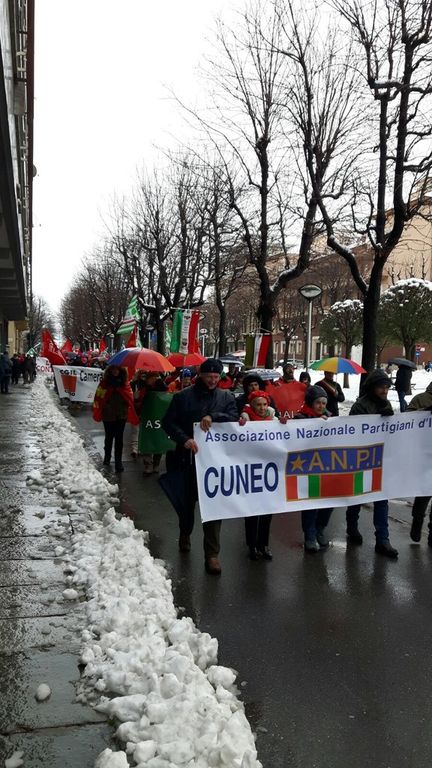 Si è svolta oggi, sabato 24 febbraio, nonostante il maltempo la manifestazione antifascista e antirazzista indetta da Anpi, Cgil e l’associazione Libera. Un corteo si è sviluppato dal Monumento alla Resistenza in Viale Angeli, lungo corso Dante, Corso Nizza, Piazza Galimberti via Roma fino a raggiungere il piazzale Audifreddi nei pressi del comune di Cuneo.