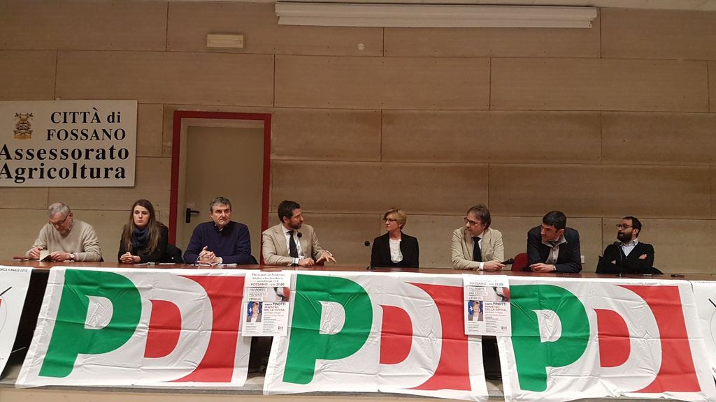 Si è concluso a Fossano il tour del Piemonte della Ministra Roberta Pinotti ieri, mercoledì 28 febbraio. Accanto a lei un gran numero di candidati PD sia al Senato che alla Camera: Chiara Gribaudo, Mino Taricco, Davide Gariglio, segretario regionale, e il fossanese Francesco Balocco, il segretario provinciale del PD Flavio Manavella e il sindaco di Fossano Davide Sordella.