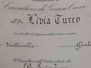 Livia Turco Cavaliere di Gran Croce della Repubblica italiana.