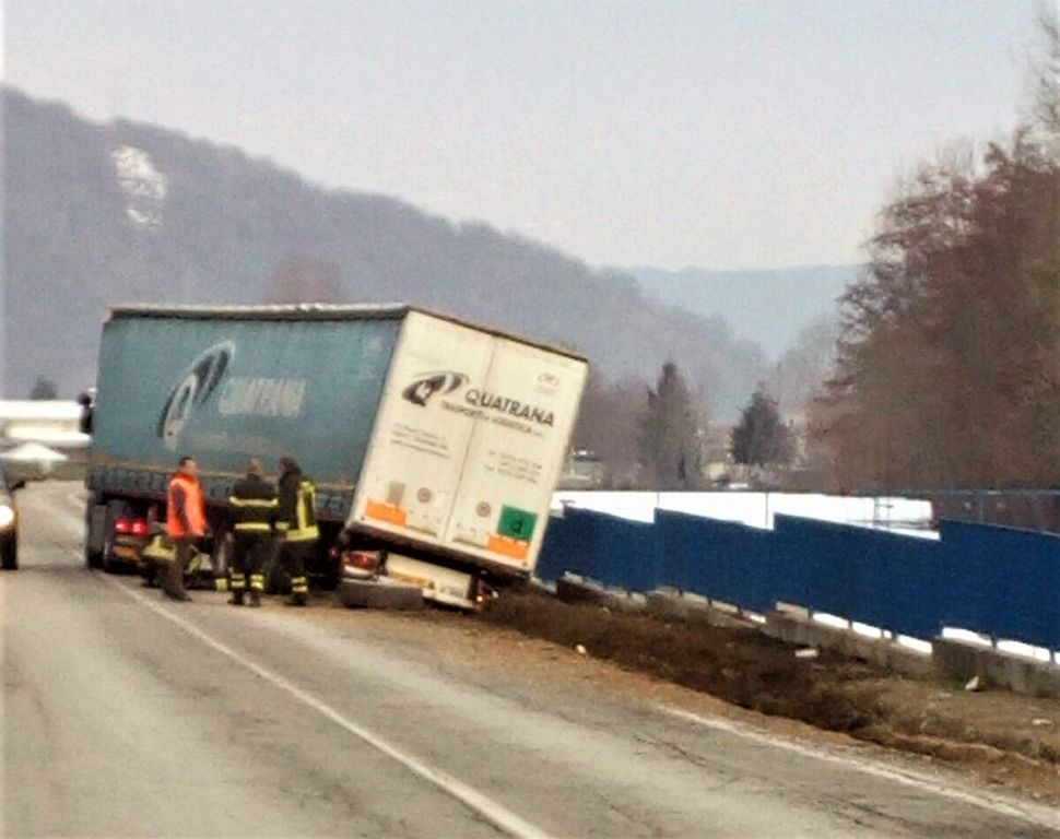 Ancora un Tir fuori strada lungo la strada provinciale 26, tra Sanfront e Rifreddo