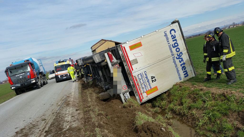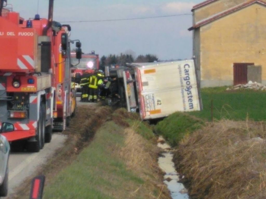 Camion si ribalta a Fossano in località Gerbo, autista trasportato all'ospedale Santa Croce