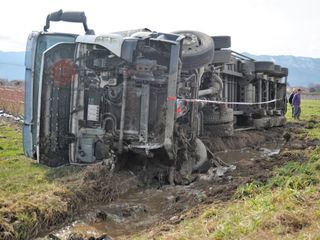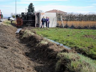 Revello, camion si ribalta lungo via Staffarda: nessun ferito (FOTO)