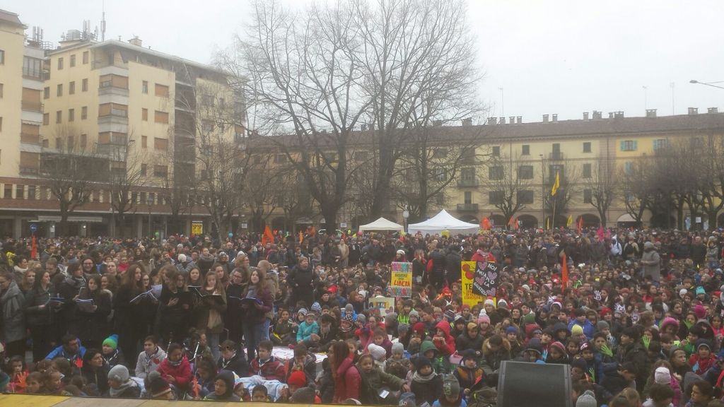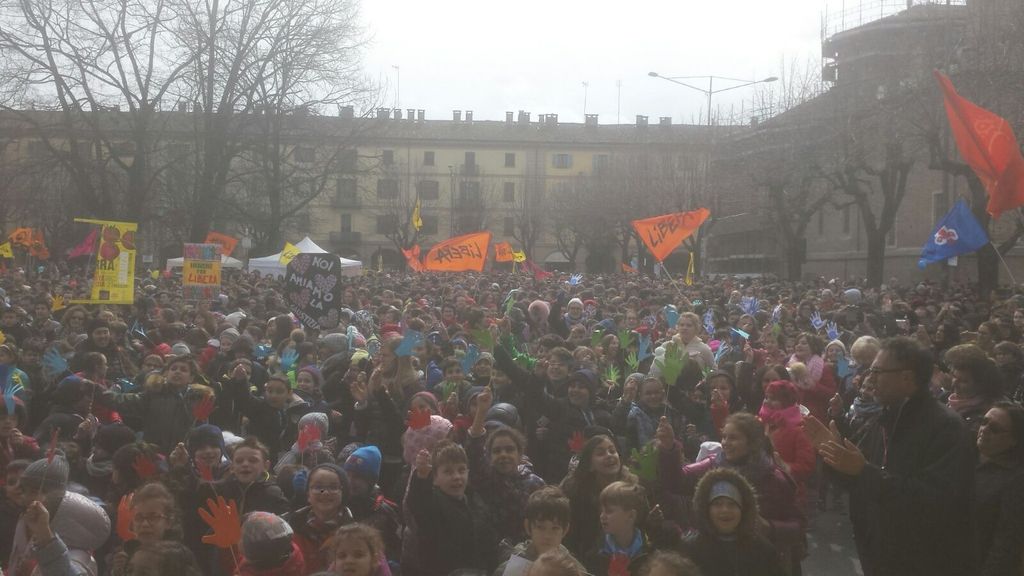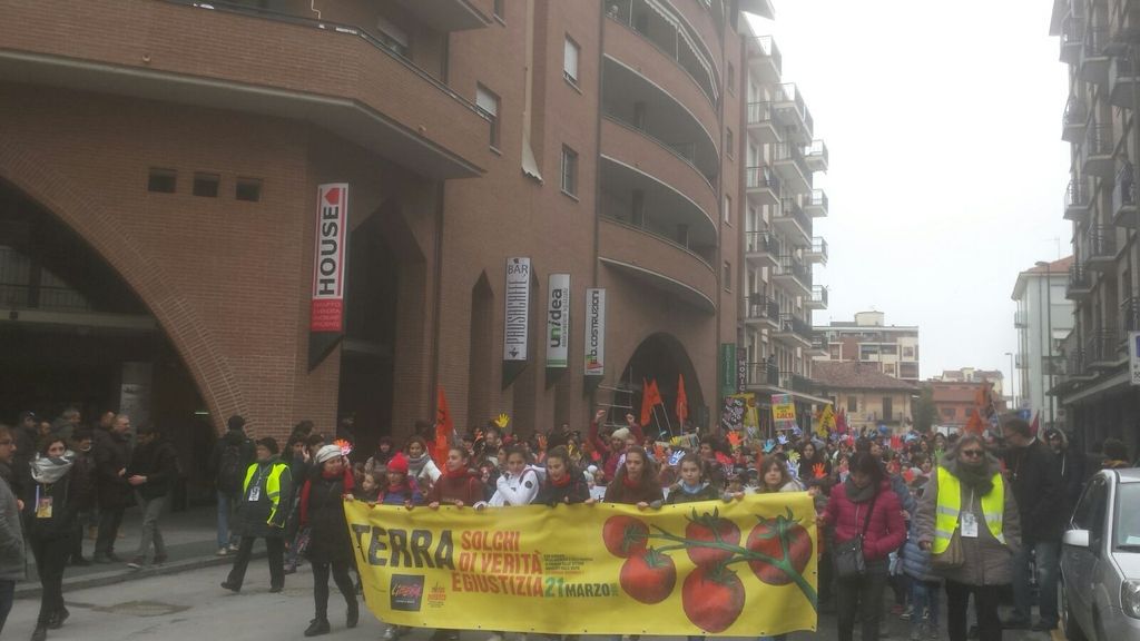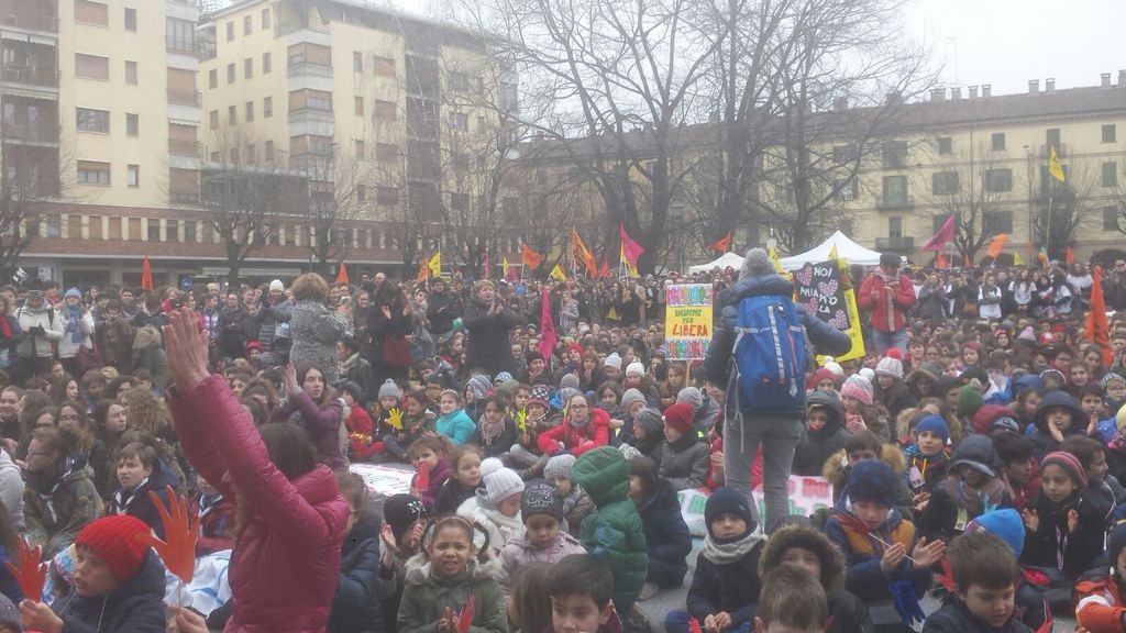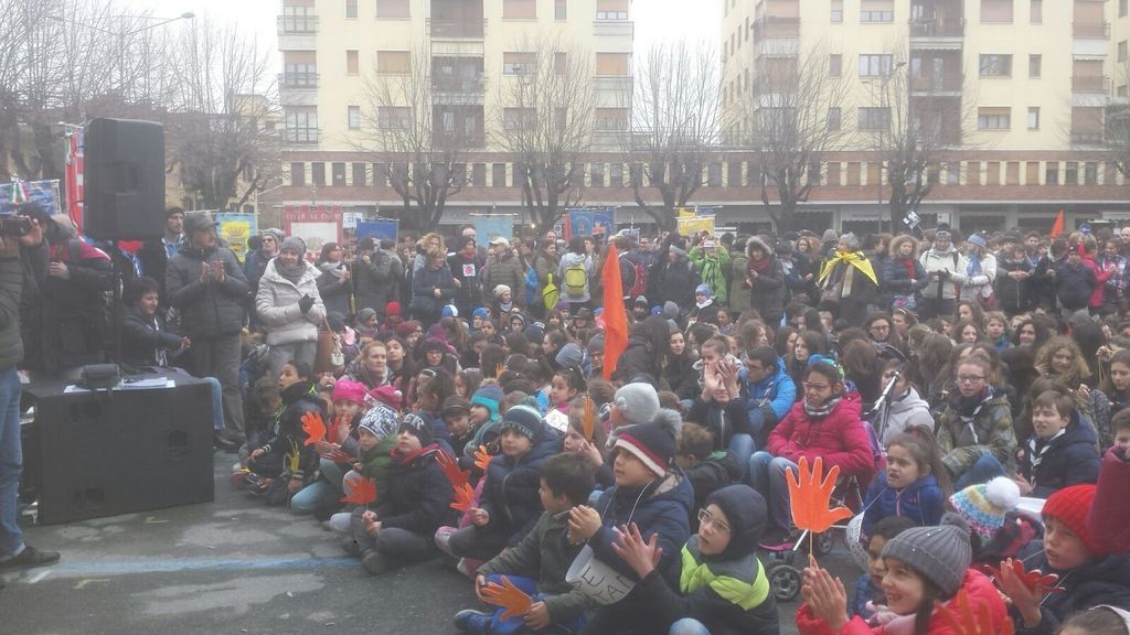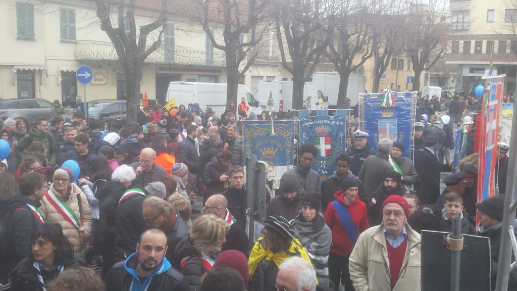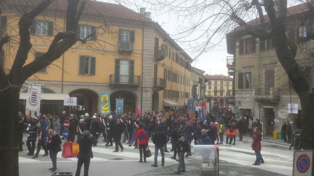 Oltre 8000 persone stanno partecipando in queste ore alla manifestazione, iniziata con il corteo da piazza ForoBoario, aperto da tantissimi bambini in un clima gioioso e colorato. Presenti studenti, amministratori e cittadini arrivati da ogni parte del Piemonte, a bordo di 65 pullman oppure giunti in città con mezzi propri: piazza Garibaldi è davvero gremita.