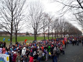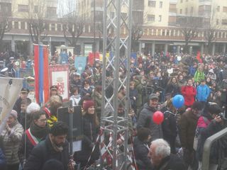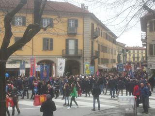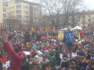 Oltre 8000 persone stanno partecipando in queste ore alla manifestazione, iniziata con il corteo da piazza ForoBoario, aperto da tantissimi bambini in un clima gioioso e colorato. Presenti studenti, amministratori e cittadini arrivati da ogni parte del Piemonte, a bordo di 65 pullman oppure giunti in città con mezzi propri: piazza Garibaldi è davvero gremita.