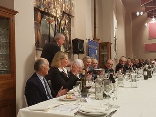 Dopo l'omaggio alle tombe, la serata è proseguita alla Tavola del Chiostro di Casa Regina Montis Regalis con una relazione del prof. Aldo Alessandro Mola sulla memoria di Vittorio Emanuele III e della Regina Elena nel Centenario della vittoria nella Grande Guerra.