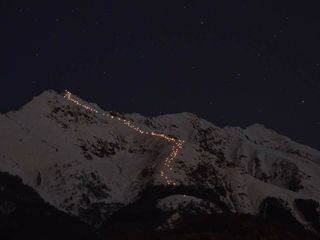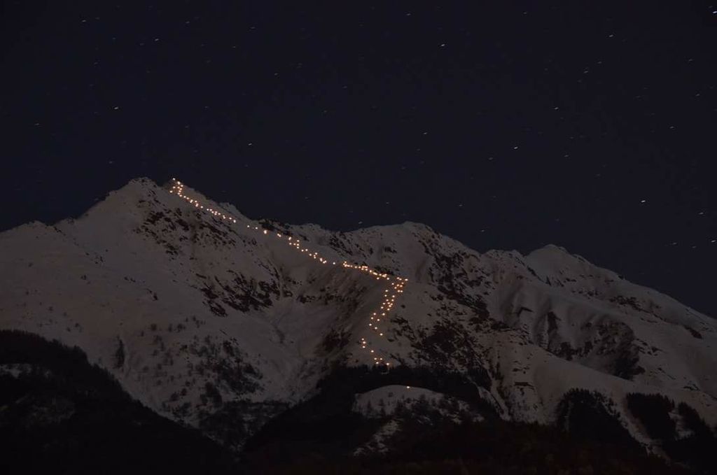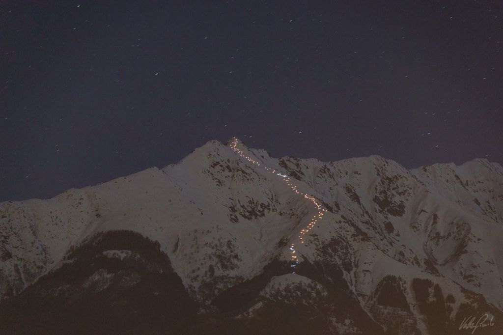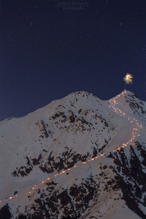 Grande spettacolo ieri sera sulla Bisalta. In 40 persone, del gruppo della presciistica di Boves, hanno dato vita ad una suggestiva fiaccolata, da record. Sono infatti state accese ben 120 fiaccole lungo tutto il percorso e accesi, una volta in cima, i fuochi d'artificio.