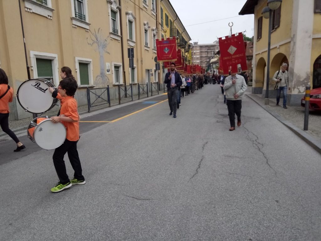 Un compleanno importante che è stato celebrato con la messa e poi con la sfilata per le vie del paese con l’accompagnamento della banda musicale “Silvio Pellico” di Boves e l’esibizione del gruppo di majorettes “Scarlet stars” di Peveragno.