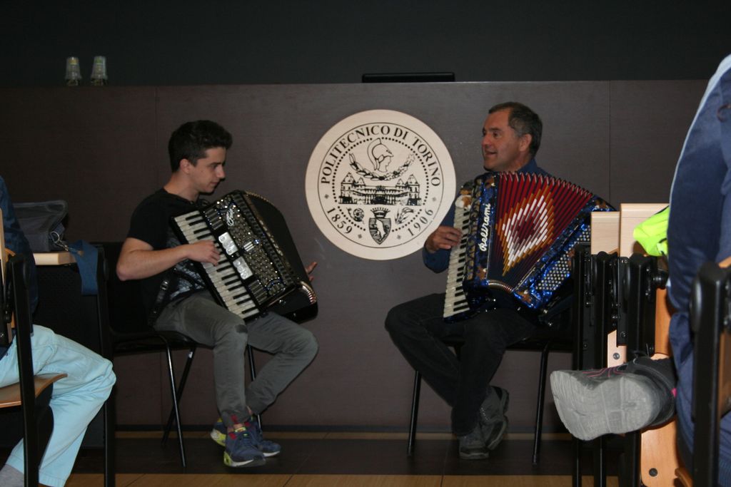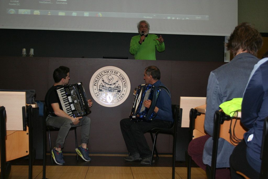 La mattinata è stata all’insegna della vivacità suscitata dalla visione di alcuni video e dalla lettura di significativi frammenti di interviste da parte dell’attore Gianfranco Rizzo accompagnato da un sottofondo musicale, di tipiche canzoni piemontesi, da due validi fisarmonicisti quali Gianpiero Roà e l’alunno della classe 5A Federico Odetto.
