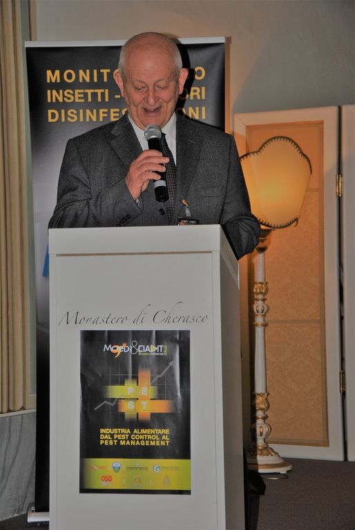 La normativa europea, in continua evoluzione, stila un elenco molto preciso di cosa sia possibile utilizzare. Di questo argomento ha parlato Daniel Lucien di Bayer, che ha analizzato la Direttiva sugli usi sostenibili dei biocidi, la Biocidal Products Regulation. Il professor Luciano Süss, già ordinario dell'Università di Milano, ha ricordato come diverse centinaia di insetti in tutto il mondo si sono insediati e si sviluppano a spese delle derrate porovocando danni diretti e indiretti. "Prima di intervenire è necessario conoscere il tipo di infestante". Sulla lotta agli infestanti, Süss ha spiegato: "l'orientamento attuale è la lotta integrata. Risultano quindi essenziali pratiche di prevenzione, ma anche indispensabili sono le attività di monitoraggio e l'attuazione di innovative tecniche di lotta", concludendo: "Un approccio così complesso e completo richiede personale tecnico preparato ed adeguatamente aggiornato". Un campo quindi in cui non ci si può improvvisare e dove il fai da te non paga. Guglielmo Pampiglione ha centrato l'intervento sul rischio da anticoagulanti, illustrando i rischi dell'impiego dei pesticidi e la necessità di mitigare questo rischio. Nuove frontiere sul fronte della lotta prevenzione e della lotta sono stati argomenti affrontati durante il convegno. Uno di questi metodi è la Nebbiasecca, illustrata da Davide Armiraglio.
