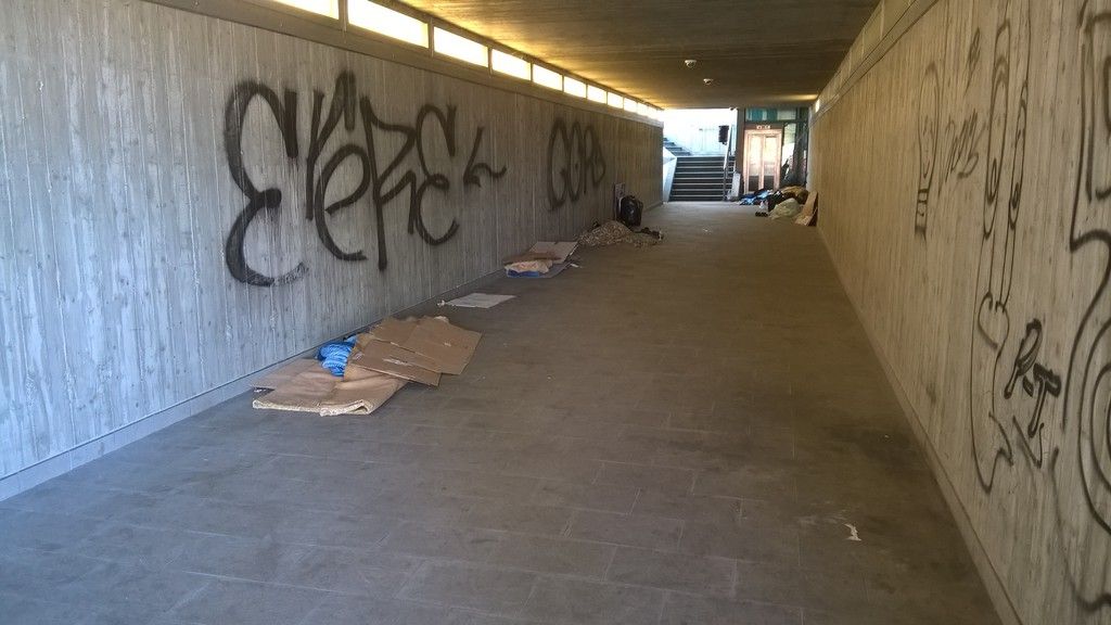 Sottopasso del Movicentro a Cuneo di nuovo occupato dai senzatetto