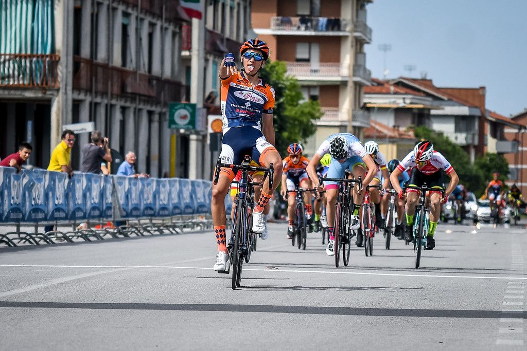 Lorenzo Gobbo (Pedale Senaghese) non si è fatto pregare e con una potente volata lanciata all’inizio del rettilineo finale si è imposto nella settantesima edizione della classicissima Coppa Bruno Giacosa.