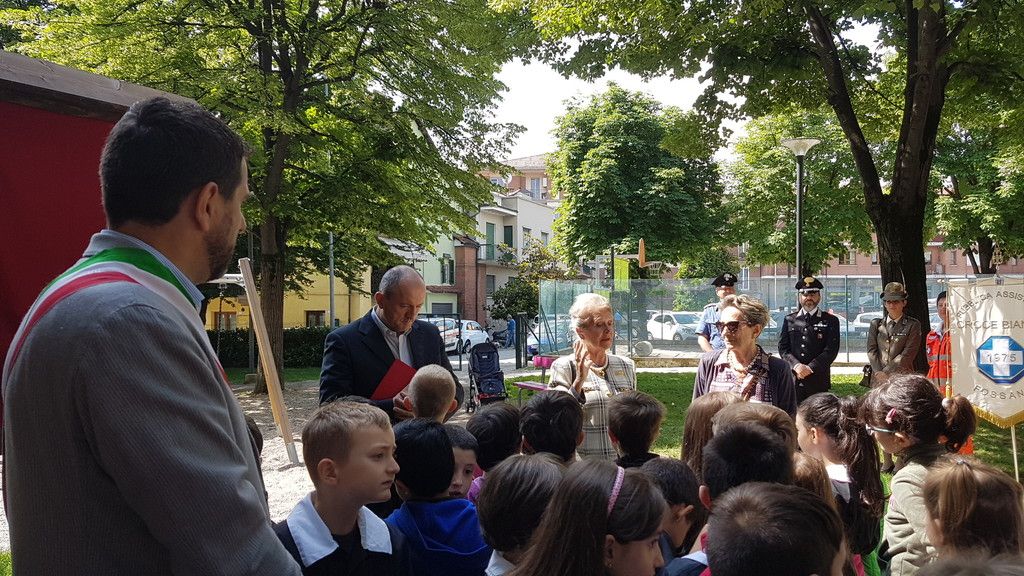 A benedire la targa e il parco stesso davanti ai bambini che fruiranno del parco è stato il vicario della diocesi di Fossano Pierangelo Chiaramello: “Credo che le farebbe piacere sapere di questo momento perché era molto credente, ma non pretendeva che anche gli altri credessero. La fede per lei è stata un motore per fare del bene”.