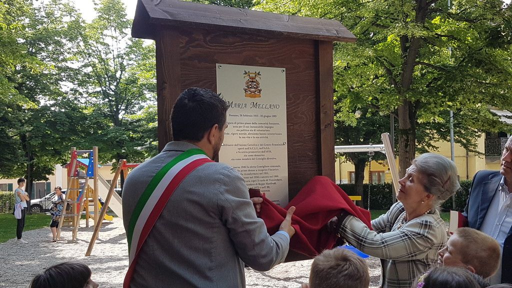 Il parco di piazza Romanisio, ristrutturato lo scorso anno con l’inserimento di una giostra inclusiva, che permette a bambini diversamente abili di giocare insieme ai loro amici, è stato intitolato a Maria Mellano, nata a Fossano il 26 febbraio 1915 e scomparsa il 25 giugno 1993.