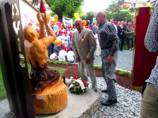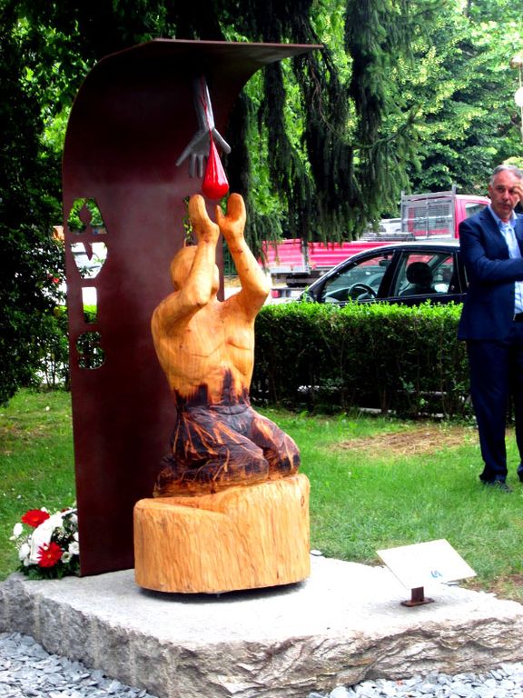 Presenti alla manifestazione i Sindaci di Dronero, Roccabruna e Villar San Costanzo, il direttore della BCC di Caraglio, don Marco Bruno, numerosi donatori e cittadini droneresi e un gruppo di bambini che, dopo la benedizione del monumento, hanno liberato in aria palloncini colorati.