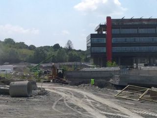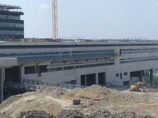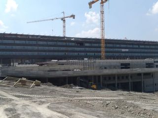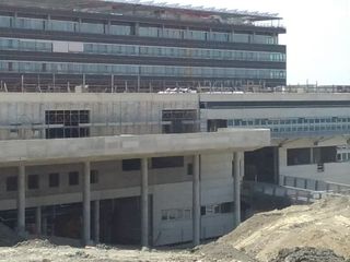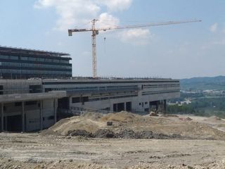 Al lavoro 300 operai al giorno. Procede spedito il cantiere del nuovo ospedale di Verduno. I piani alti, quelli già tinteggiati di grigio scuro, sono terminati. Nelle prossime settimane si procederà verso i piani bassi e interrati.