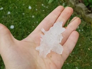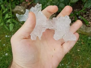 Enormi chicchi di grandine hanno martoriato soprattutto la zona di Trinità e Carrù, pioggia fortissima e vento, invece, si sono localizzati soprattutto sul Cuneese. Per ora non si registrano danni.