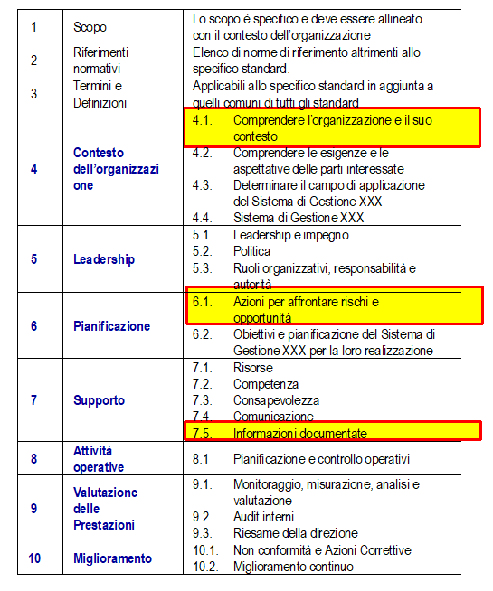 Il cambiamento è rappresentato dalla nuova HLS (HIGH LEVEL STRUCTURE) che costituisce la struttura portante dei Sistemi di Gestione.