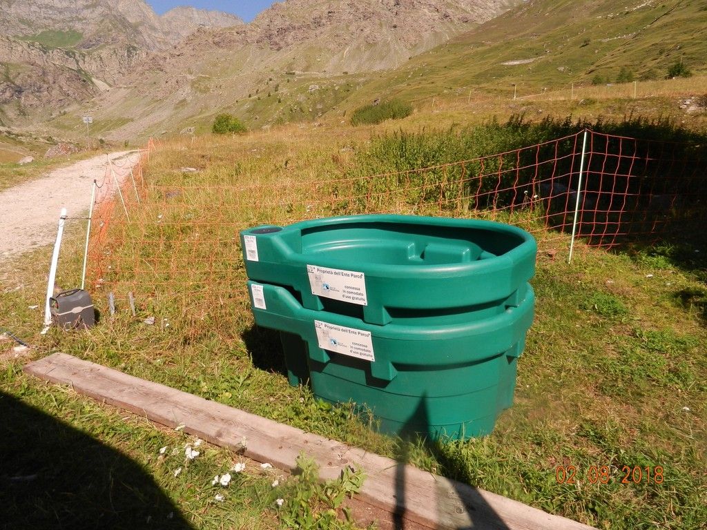 Il Parco ha promosso l’acquisto di vasche mobili da pascolo da utilizzare in loco delle vecchie e improvvisate vasche da pascolo già presenti sul territorio. Le vasche mobili consentono una migliore gestione della risorsa idrica sull’area pascolata, riducono gli sprechi idrici grazie alla presenza di un galleggiante che controlla il livello dell’acqua presente e, potendo essere spostate durante la monticazione, possono ridurre i sentieramenti provocati dagli animali in movimento dalle aree pascolate alle zone di abbeverata fisse talvolta presenti nei pascoli alpini.