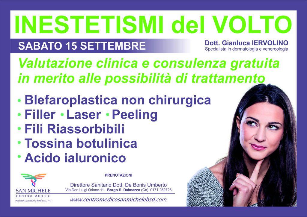 “La giornata di sabato è rivolta ai pazienti di tutte le età che, presentando uno o più inestetismi del volto, siano interessati ad approfondirne alcuni aspetti quali la natura, la prevenzione e le strategie di trattamento.”