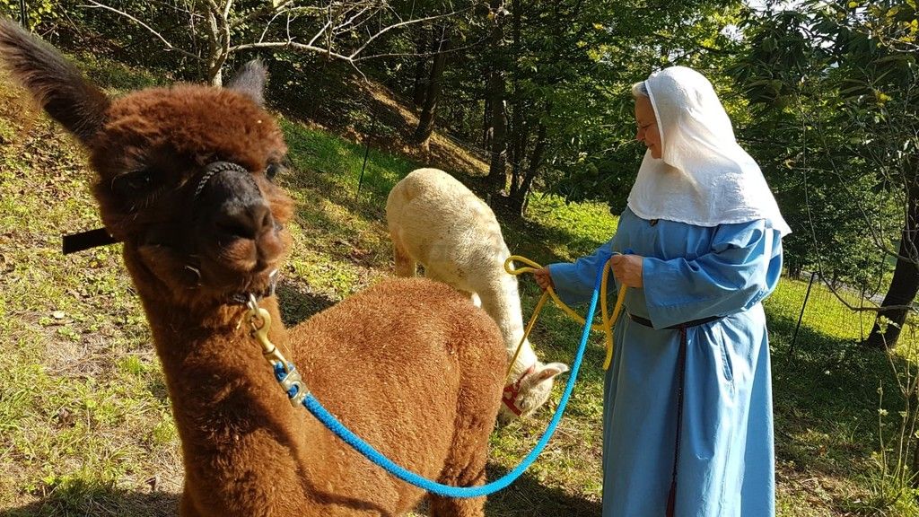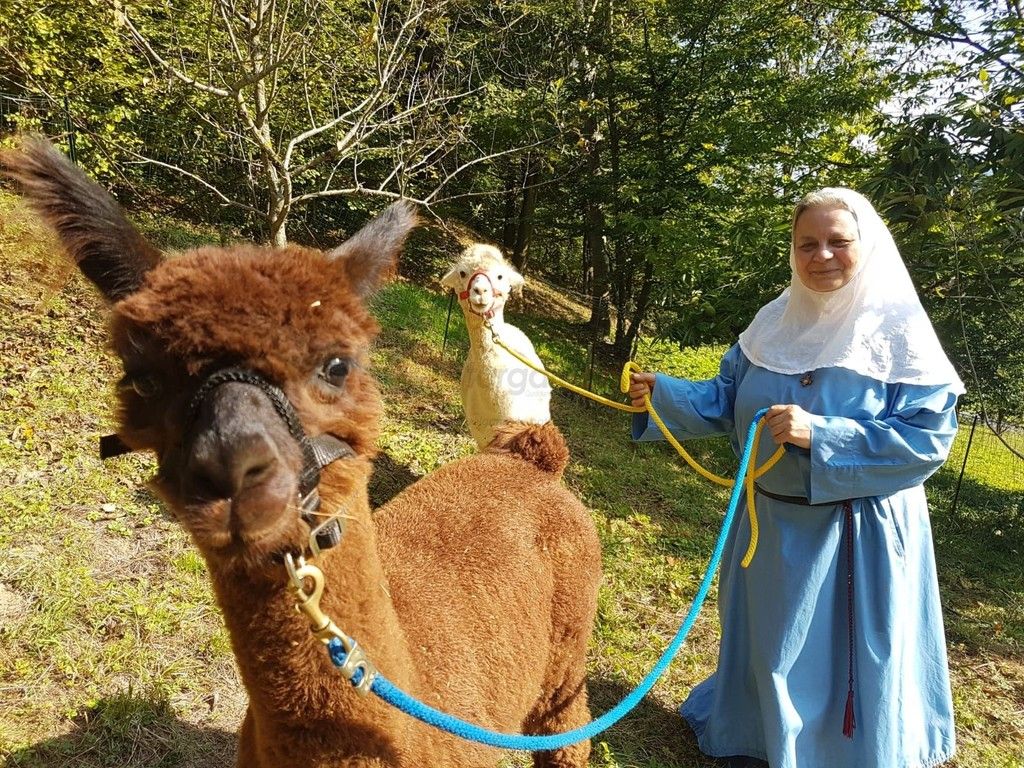“Bisogna pur guadagnarsi il pane quotidiano – racconta suor Laura -. La bonifica all'Eremo dopo l’incendio distruttivo è ferma da alcuni mesi. Un'associazione onlus svizzera mi ha donato due alpaca addestrati al trekking e così ho pensato di proporre gite nella natura. Sono animali miti e affascinanti adatti ai bambini e alle famiglie per la loro calma andatura e il carattere docile”.