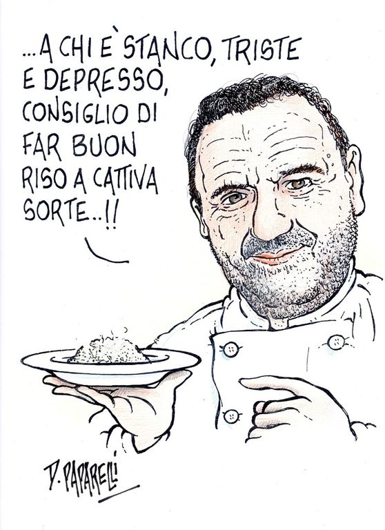 L’idea di Danilo Paparelli - giornalista, vignettista e autore satirico, attivo a Cuneo da oltre trent’anni nel campo del disegno umoristico – di ritrarre 73 chef stellati è nata per un volume dal titolo omonimo “Più fumetto che arrosto” edito da Nerosubianco e recentemente premiato al Casinò di Sanremo con la targa “Libro più gustoso dell’anno 2018”.