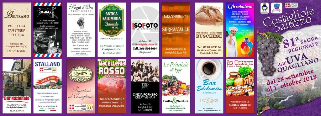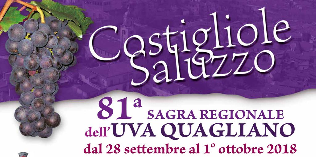 Alle ore 11.30 Inaugurazione della 81° Sagra dell’Uva Quagliano con la partecipazione del gruppo bandistico “Santa Cecilia” di Costigliole Saluzzo.