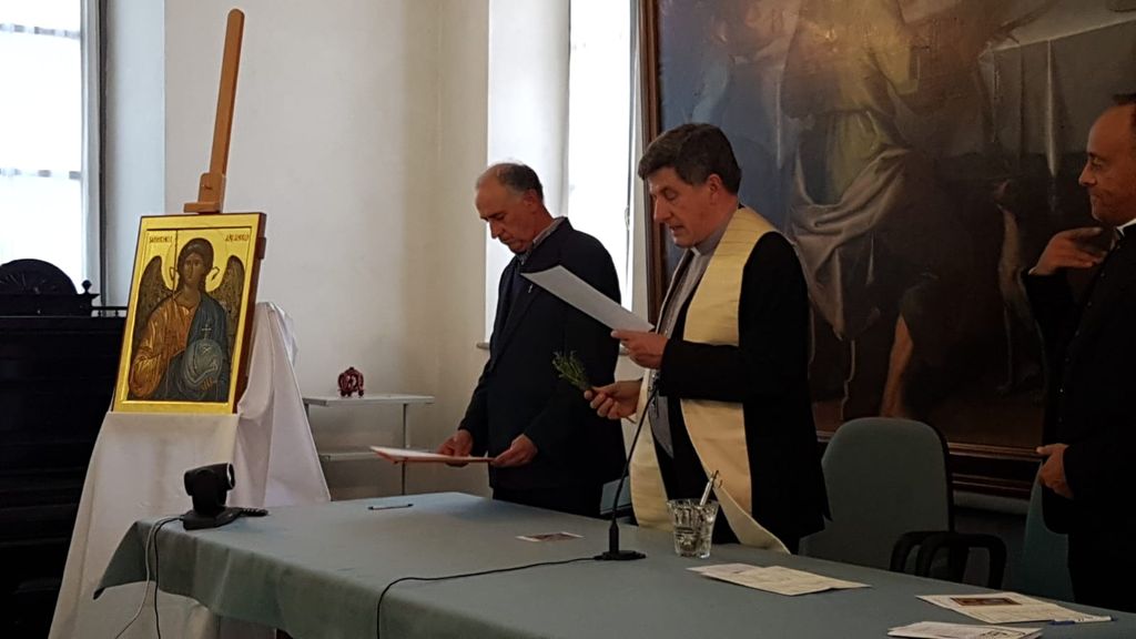 Nel corso della cerimonia è stata benedetta un'icona di San Michele realizzata dall'artista cuneese Carla Bono che sarà apposta all'ingresso degli uffici della Diocesi.
