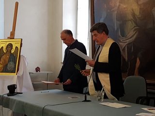 Nel corso della cerimonia è stata benedetta un'icona di San Michele realizzata dall'artista cuneese Carla Bono che sarà apposta all'ingresso degli uffici della Diocesi.