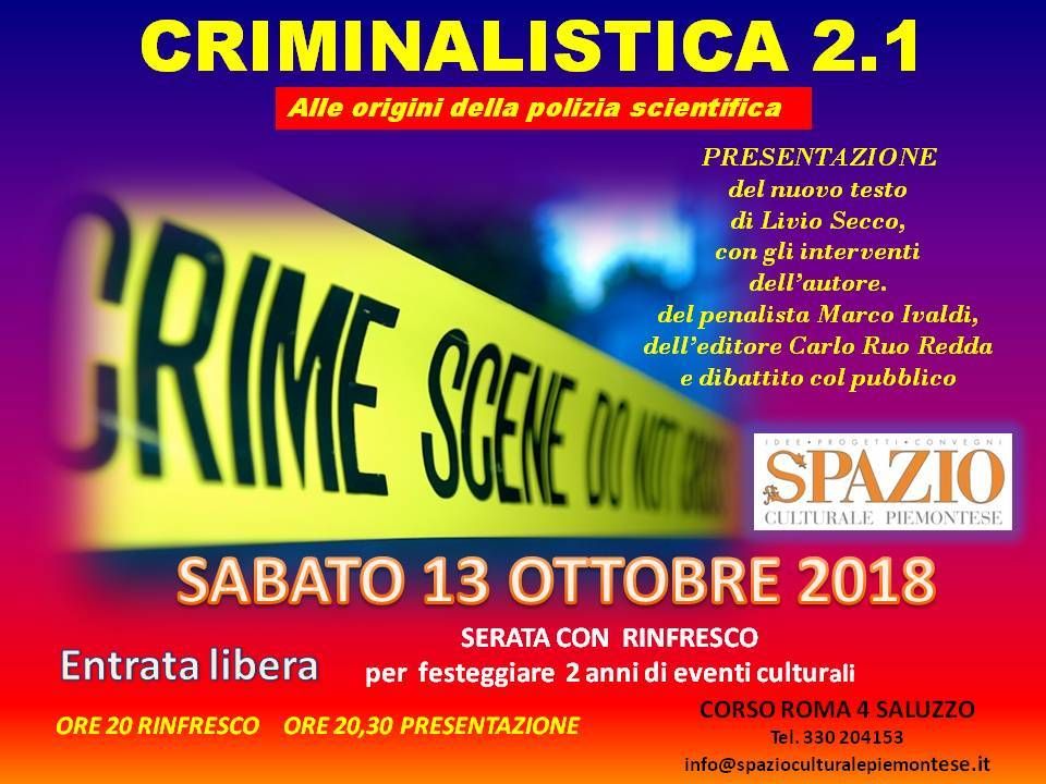 E’ in programma il rinfresco di benvenuto sabato 13 ottobre alle 20 e la presentazione alle 20,30 di "Criminalistica 2.1. Alle origini della polizia scientifica", l'ultimo libro di Livio Secco, oplologo, polemologo ed esperto in filologia egizia.