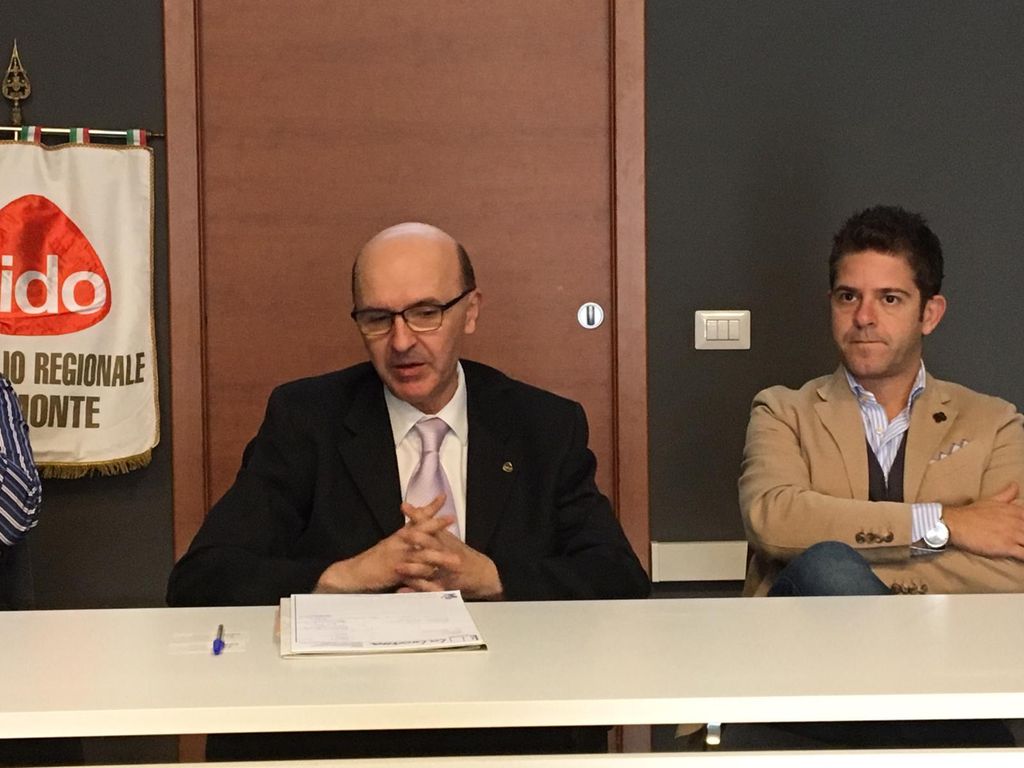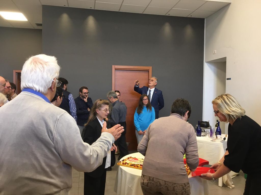 Presenti le autorità locali, regionali e nazionali dell'AIDO: al tavolo dei relatori il presidente della sezione Cuneo e segretario nazionale Gianfranco Vergnano e il presidente dell'AIDO Piemonte Valter Mione, qui sotto intervistato da TargatoCn: