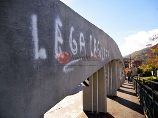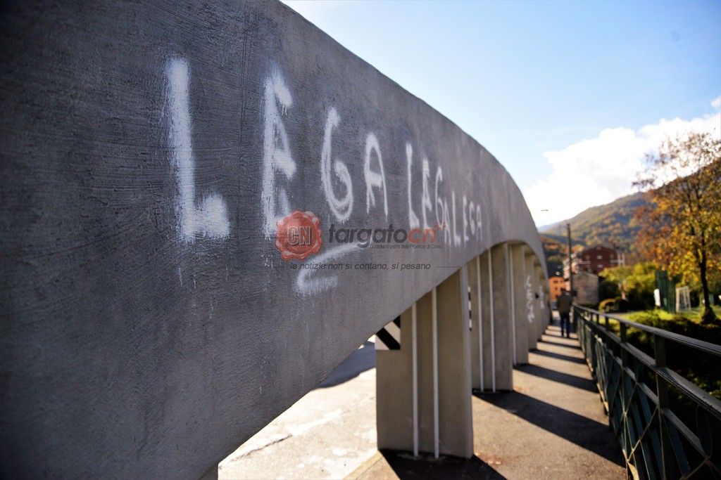Non cambia il contenuto delle scritte, “Lega Lega Lega”. Cambiano invece le sfumature “artistiche”. Probabilmente la bomboletta spray di colore nero, utilizzata scorsi tre episodi, è finita, e i vandali hanno dovuto così “ripiegare” sul colore bianco
