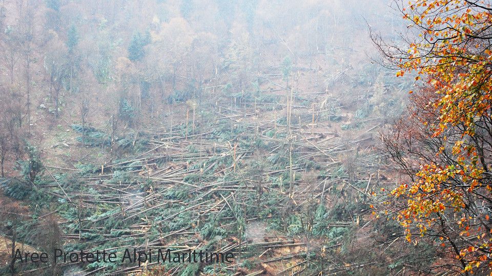 Il vento ha causato danni consistenti soprattutto a monte di San Bartolomeo e ha colpito pesantemente nei valloni di Rumiano e del Cavallo e a Certosa di Pesio.