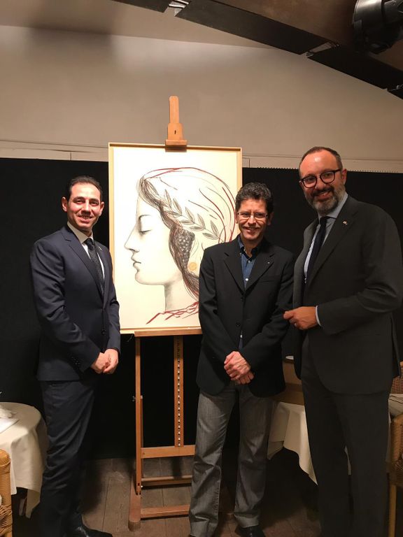 Un’azione circolare che ha dato il titolo all’incontro nel doppio senso di omaggio alla convivialità e di servizio alla comunità, finalità del club saluzzese, presieduta da Giovanni Benedetto. Ma anche un cerchio come è la ruota simbolo del Rotary che ha guidato l’ispirazione di Giletta ed è diventata l’orecchino dorato della musa rappresentata nel quadro.