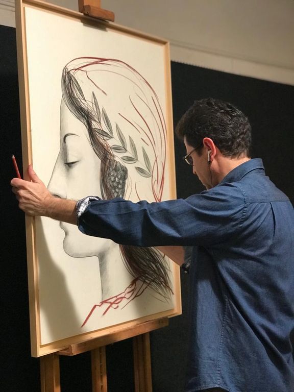 Tecnica e poetica: matite, pennello e cuore. Come vive l’ artista la materializzazione della sua idea? “Quando si lavora non si è totalmente consapevoli. C’è un’area di inconsapevolezza che è forse l’area del cuore, la possibilità che ci è data di agire con il cuore piuttosto che mente”.