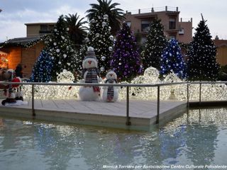 Le decorazioni luminose che abbelliscono lo spazio sono state realizzate a mano da alcune volontarie guidate dalla creatività e abilità di Giovina Mannelli e da sole rappresentano un motivo di visita del mercatino. Al centro della vasca della fontana una scintillante slitta di Babbo Natale sarà a disposizione di chiunque desideri fare una fotografia.