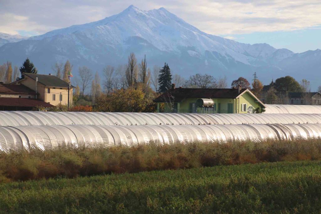 Alla sessantina di giornate piemontesi in proprietà, Gianni, Giorgio e Pierluigi, nel corso degli anni ne hanno aggiunte un’altra quarantina in affitto. Sulla maggior parte dei terreni vengono coltivati il fieno da erba medica, il mais, l’orzo e il grano che servono ad alimentare i bovini. Sette giornate le occupano le moltissime colture orticole di stagione, ma anche il frutteto con fragole, piccoli frutti, ciliegie, mele, pesche, susine, pere, albicocche. L’ultima novità è l’uva apirene senza semi, che l’azienda ha iniziato a piantare per sostituire gli impianti di kiwi colpiti dalla batteriosi. Tre giornate sono coperte con undici serre, dove le produzioni (principalmente pomodori, peperoni, fragole e insalate) possono protrarsi qualche settimana in più rispetto a quelle all’aperto. Le colture vengono vendute nel punto vendita di corso Santorre di Santarosa.