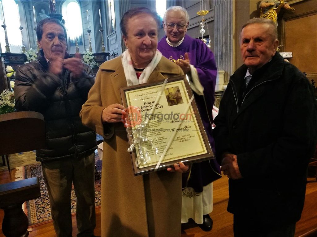 Alle ore 10.30 la Santa messa celebrata da don Remigio Luciano, che si è conclusa dalla lettura della preghiera dei musicisti. Al termine della celebrazione, poi, sono stati consegnati i sonetti celebrativi, tra la commozione generale, a Rosa Allio ed Aldo Genre, da sempre amici e sostenitori della banda, nonché titolari della “Trattoria del Giardino” di piazza Piave.