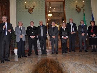 In apertura di cerimonia il prefetto Giovanni Russo ha fatto gli auguri di buone feste ai presenti, evidenziando come la Prefettura sia la casa di tutti e invitando i presenti a prestare particolare attenzione alla situazione sociale ed economica, delicata e difficile.