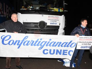 Una protesta organizzata da Astra Trasporti Associati Cuneo in collaborazione con Confartigianato Cuneo: “Per la libertà di circolazione e il diritto al lavoro occorre cancellare il divieto di transito ai mezzi sopra le 19 tonnellate emanato dalle autorità francesi”. Una decisione assunta, ben 18 mesi fa, in modo unilaterale e respingendo ogni proposta di dialogo, dai sindaci di Tenda, La Brigue, Breil, Fontan e Saorge.