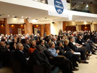 Sala gremita al Centro Frentani di Roma per la IV Assemblea nazionale del Popolo della Famiglia.