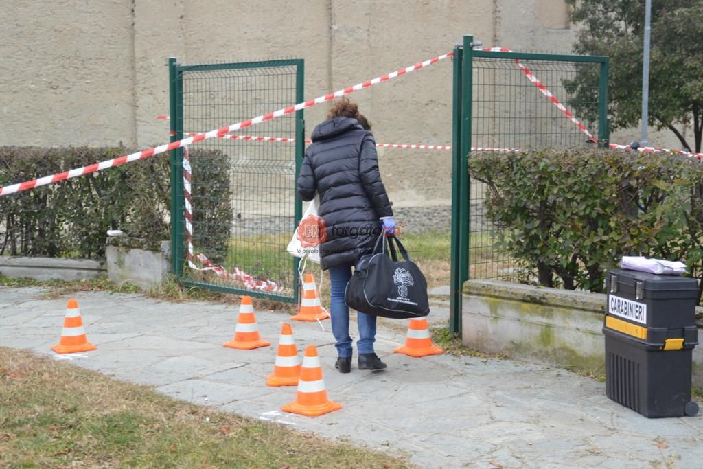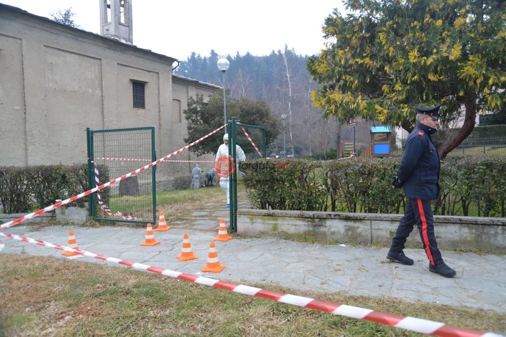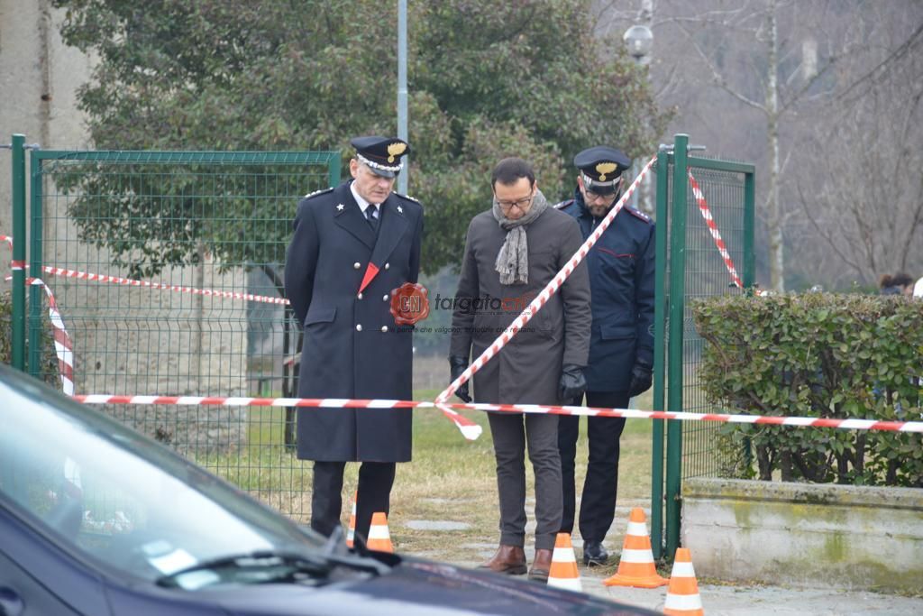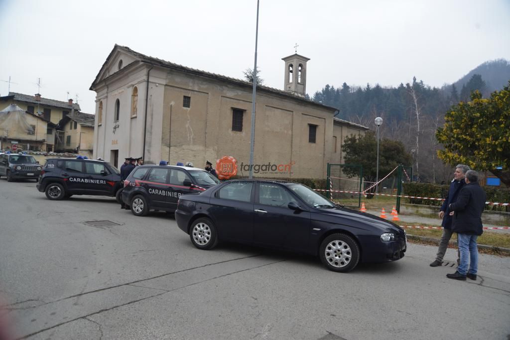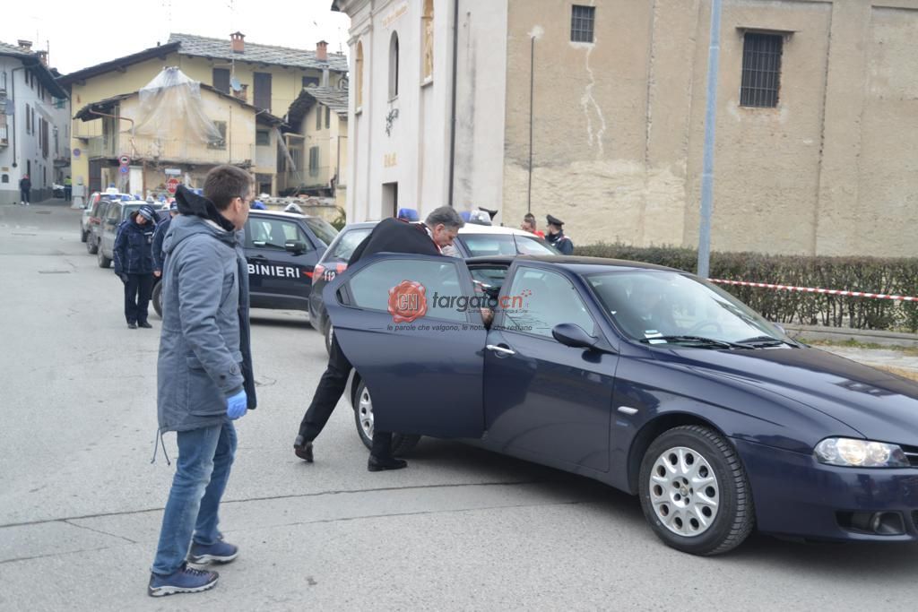 I carabinieri di Saluzzo stanno traducendo al comando della compagnia un uomo, in seguito al rinvenimento del cadavere di una donna, questa mattina, nei pressi della chiesa di San Rocco a Barge.