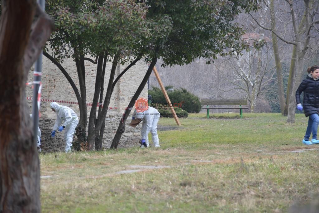 I militari del nucleo operativo stanno portando a termine i rilievi nei “Giardini d’Annonay” dove è stato ritrovato il corpo. Si cerca anche l’eventuale arma del delitto