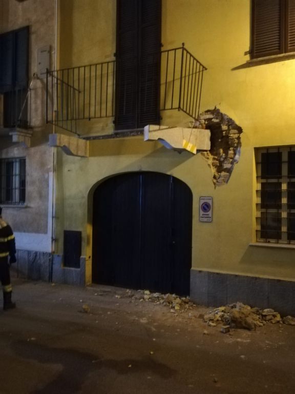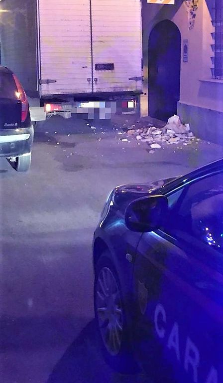 Il mezzo pesante ha urtato un balcone di un'abitazione privata, danneggiandolo pesantemente.