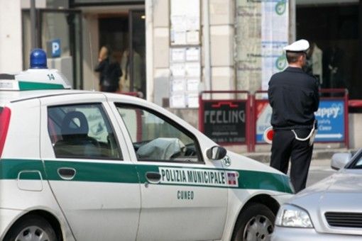 Intervento di un equipaggio della Polizia Locale e vigili del fuoco a Cuneo, nella mattinata di ieri (giovedì 14 febbraio)