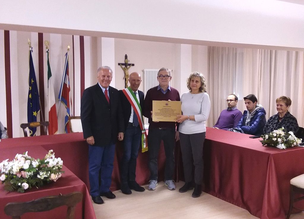 Di qui la scelta di consegnare ai titolari del Salumificio Brizio una targa, simbolo della nostra stima e della nostra riconoscenza”.