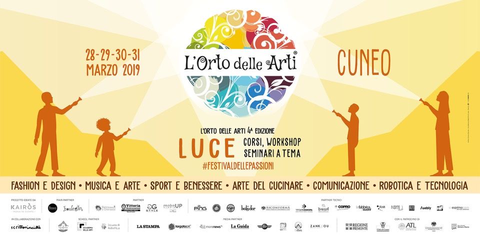Fashion e design, musica e arte, sport e benessere, l’arte del cucinare, la comunicazione, robotica e tecnologia: sono queste le “passioni” sulle quali si muoveranno i nuovi corsi e i nuovi laboratori dell’evento “L’Orto delle Arti”, previsto a Cuneo per la 4a edizione “Luce” dal 28 al 31 marzo 2019.