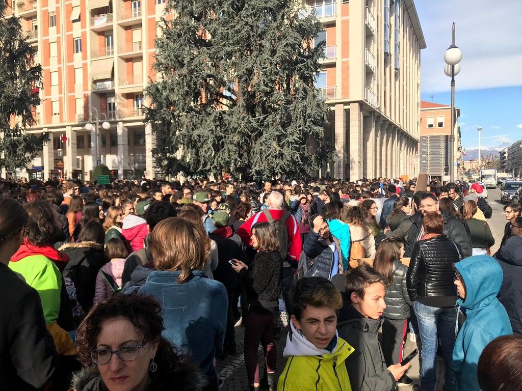 Tutte le principali città della Granda, infatti, si sono messe in marcia con cortei, dibattiti e incontri pubblici, specialmente Cuneo: nel video il lungo corteo da piazza Europa a largo Audifreddi, che alla partenza ha contato circa 1500 studenti.